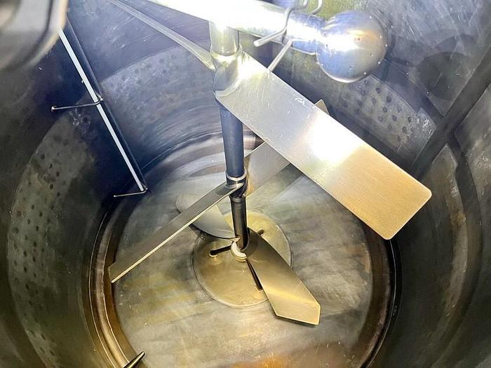 1 - used 500 gallon total capacity (416 I.G. / 1892 L) Feldmeier Mix Tank. Stainless steel construction. 100 psi @ 350 deg. F multi-zone jacket. Interior tank dims 48" dia. x 56" straight side. Slope bottom to end bottom discharge with 2" valve. 0.75 HP 208/230/460 volt, 1720 RPM motor with Reducer ratio: 30:1, approx. 58 RPM output. With (2) CIP Spray Balls, temperature probe, lifting lugs. Overall height with mixer: 102". Last used in a food facility. F.O.B. - LOCATION